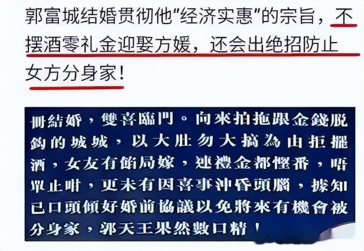 席开的也不多,规格也不算高,甚至连方媛的中式敬酒服都远不及郭天王的西装贵,两人从恋爱到结婚,都在凸显郭天王的地位,方媛似乎只是附属品。
